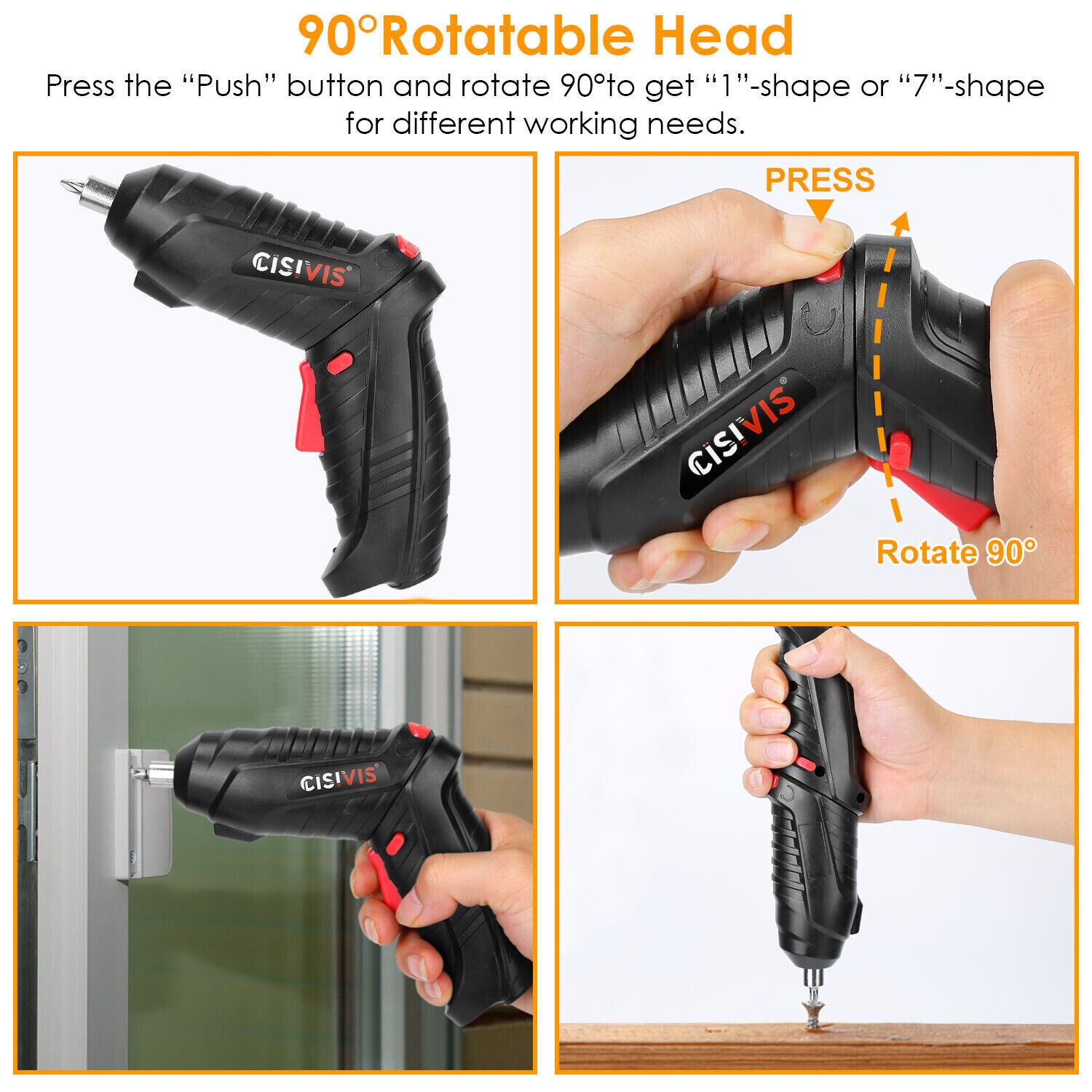 90° Rotation Handle:The power screwdriver gives you a feeling of comfortable and natural grip. The screwdriver handle can be rotate 90°,can according your screw target to change direction,which makes your work more convenient and safe. Ergonomic design of rubberized handle can use it for a long time without feeling tired.